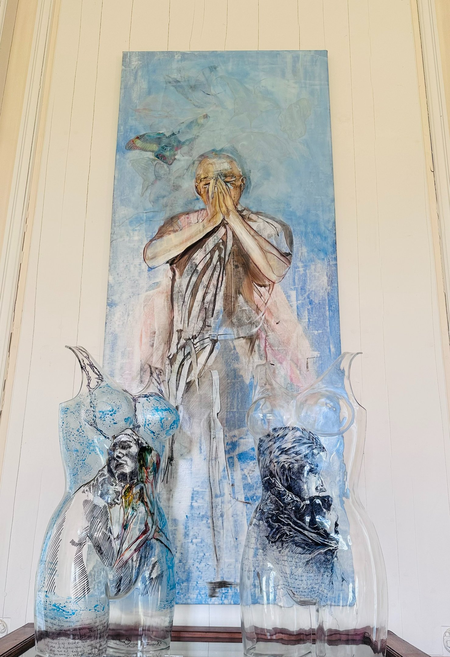 Furthermore, the perpetual interplay of light and shadow in her work generates an enduring tension that strikes a chord with viewers, prompting them to contemplate their own experiences and the journeys that have moulded them. With each brushstroke and every layer of colour and lines, a story unfolds that resonates with the universal themes of longing and identity with which we are all familiar. In a world where the proletarian and the mythical collide, Sylvie Marc's creations are more than just aesthetic objects; they are profound representations of the existential questions and human emotions that linger just beneath the surface, prompting contemplation on what it means to connect with our surroundings. The artist's exploration of character invites us to lose ourselves within these painted figures, where the boundaries of reality blur. This allows us to feel, think, and ultimately gain a deeper understanding of ourselves in relation to the world around us and the intricate web of life that binds us all.