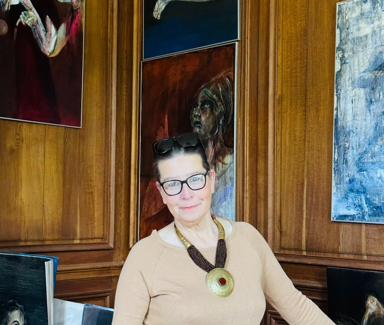 Sylvie Marc is a French artist whose work centres on an honest and profound exploration of colour. It is a quest for originality â an intuition that the painter possesses, and which she expresses through her visual and pictorial work. Her figures, captured in their gaze and movement, exist on the tightrope between faith and absolute truth, as if on the edge of language. This makes them increasingly inhabit the light and embrace the sky. The word 'quest' emerges repeatedly, reverberating in the air like a mantra. Sylvie works in successive waves, often taking up a character or motif and situating it in a trajectory that suggests a narrative with a porous, open structure. This narrative embraces the characters' preoccupations, obsessions, and hopes, ultimately leading them to an emotional depth that profoundly resonates with viewers and art enthusiasts alike. Unlike many artists who draw inspiration from outdoor landscapes, Sylvie advocates a more introspective approach: "She does not undertake outdoor work, and she is truly an indoor painter." She compares her approach to that of a writer, constructing her works as one would write a story. She paints more like a writer than a painter in love with pure technique, and she likes to tell stories.